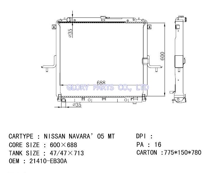 DPI: NISSENS: 68717 OEM: 21410-EB30A/21410-EB31A CAR TYPE:Nissan Pathfinder/Frontier Auto radiator/automovil radiadores