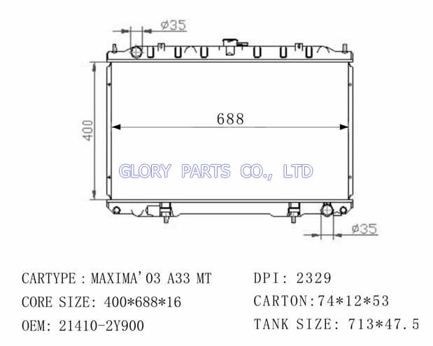 DPI: 2329/2612 NISSENS: 68713 OEM: 21460-35U00/21460-2Y603 CAR MODEL: Nissan Maxima'03 Auto radiator/automovil radiadores