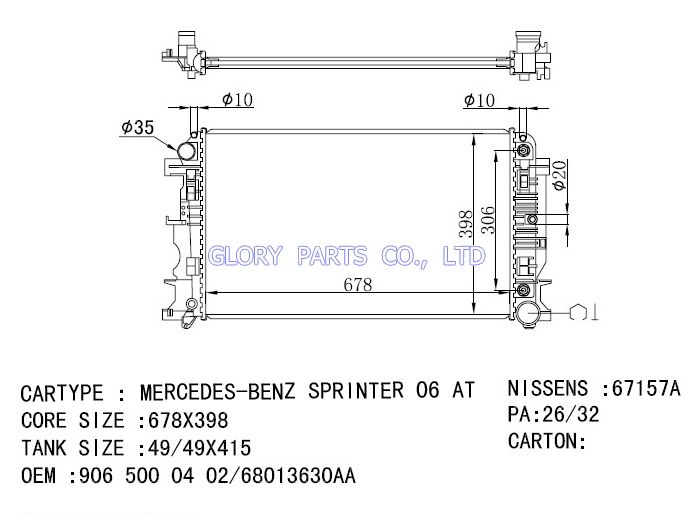 DPI: 13254 NISSENS: 67157A OEM: 9065000402 CAR MODEL:Mercedes-Benz Sprinter 06 Auto radiator/automovil radiadores