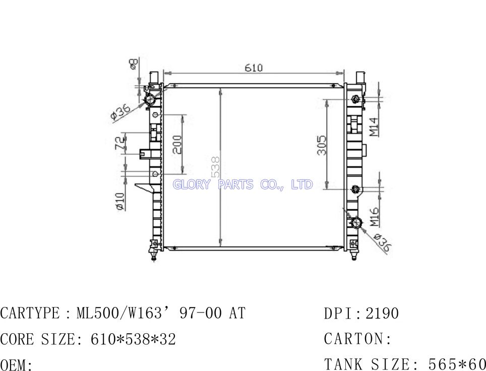DPI: 2345/2190 NISSENS: 62619 OEM: 1635000003/0404/2204 CAR MODEL: Mercedes-Benz W163 Auto radiator/automovil radiadores