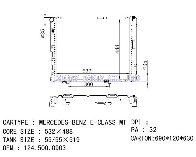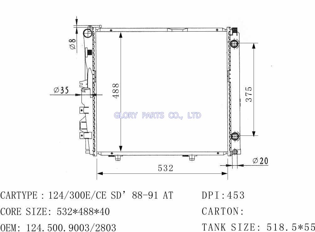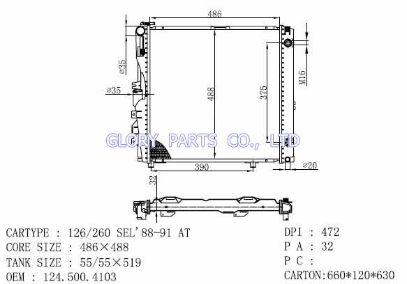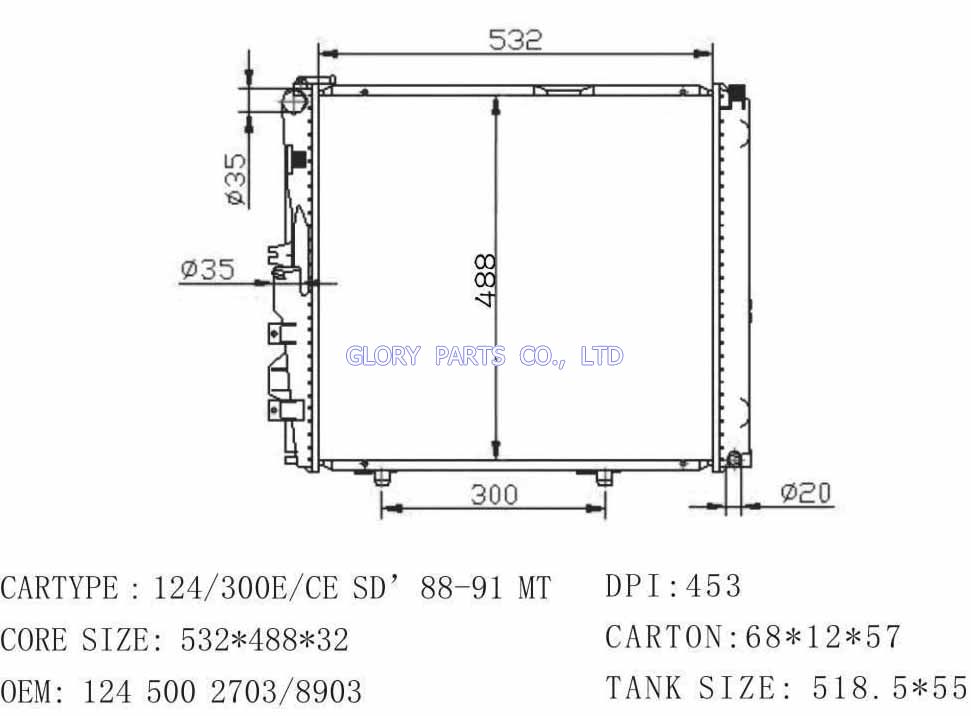 DPI: NISSENS: 62697A/62693A OEM: 1245000903/1245002103/ 1245009203 CAR MODEL: Mercedes-Benz 124 Auto radiator/automovil radiadores