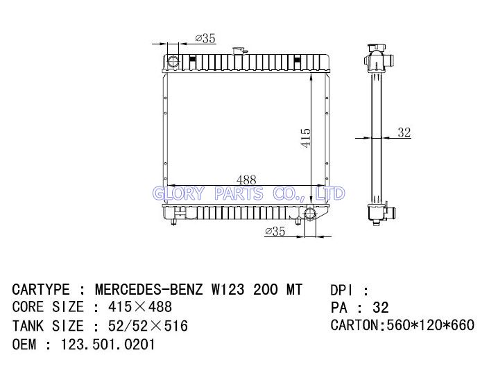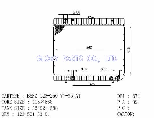 DPI: 671 NISSENS: 62680 OEM: 1235013301 CAR MODEL: Mercedes-Benz 123 Auto radiator/automovil radiadores