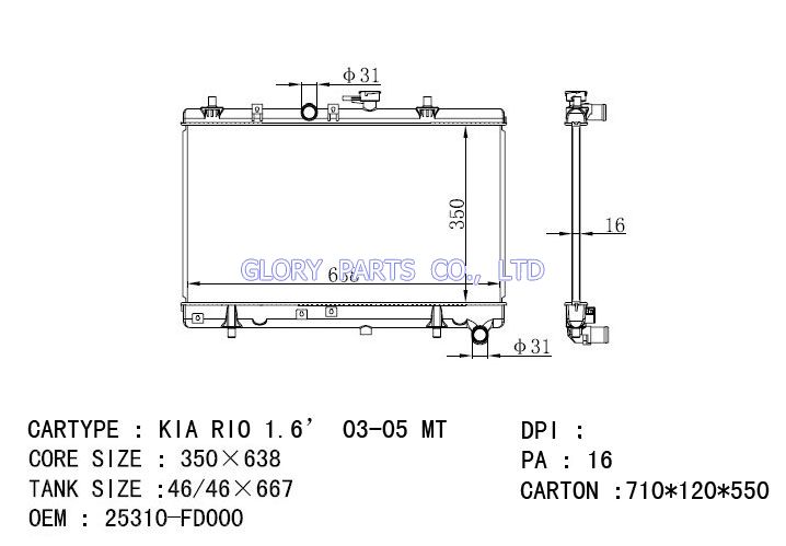 DPI: NISSENS: 66665 OEM: 25310-FD010 Car Model: Kia Rio 00-05 Auto radiator/automovil radiadores