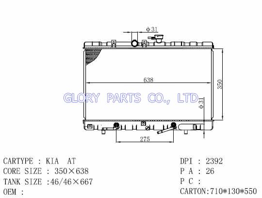 DPI: NISSENS: 62505 OEM: KK139-15-200A/KK10D-15-200 Car Model: Kia Pride'93 1.1 Auto radiator/automovil radiadores