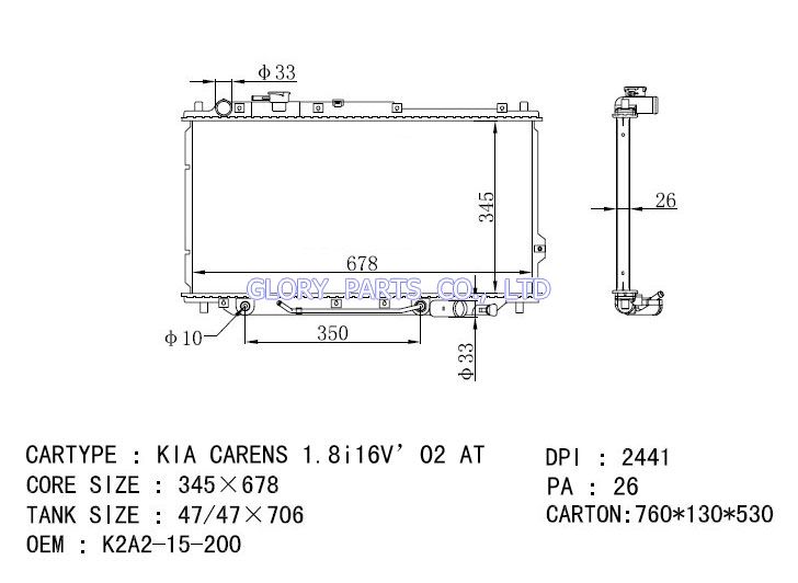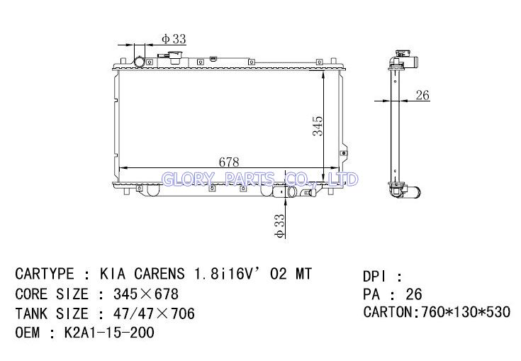 DPI: 2602/2441 NISSENS: 66630 OEM: K2A2-15200 Car Model: Kia Carens Auto radiator/automovil radiadores