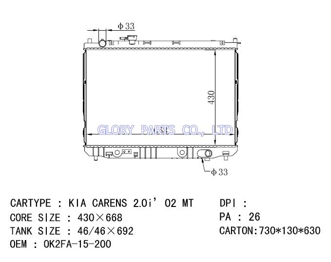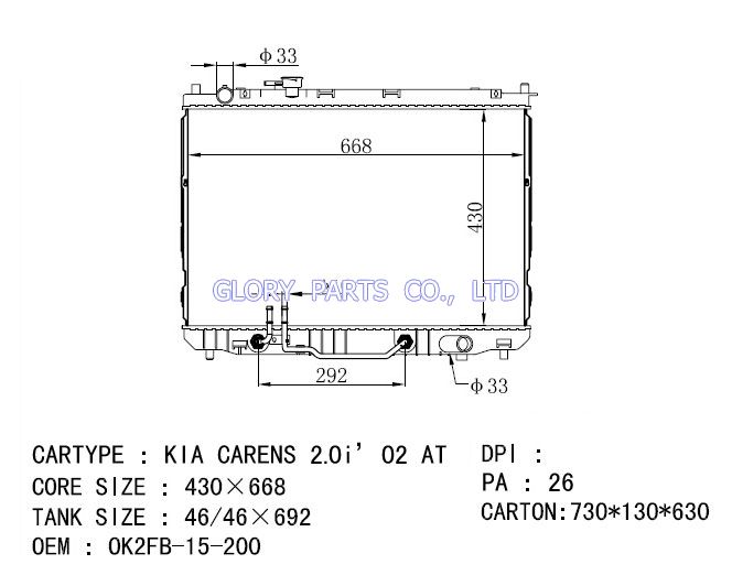 DPI: NISSENS: 66634 OEM: OK2FB-15-200 Car Model: Kia Carens 2.0I Auto radiator/automovil radiadores