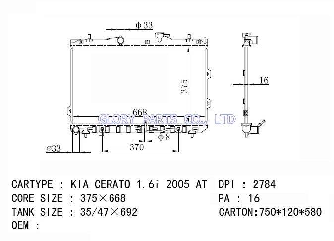 DPI: 2784 NISSENS: 66648 OEM: 25310-2F000/25310-2F030 Car Model: Kia Cerati Auto radiator/automovil radiadores