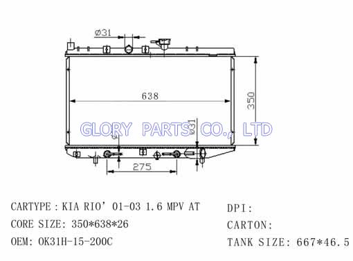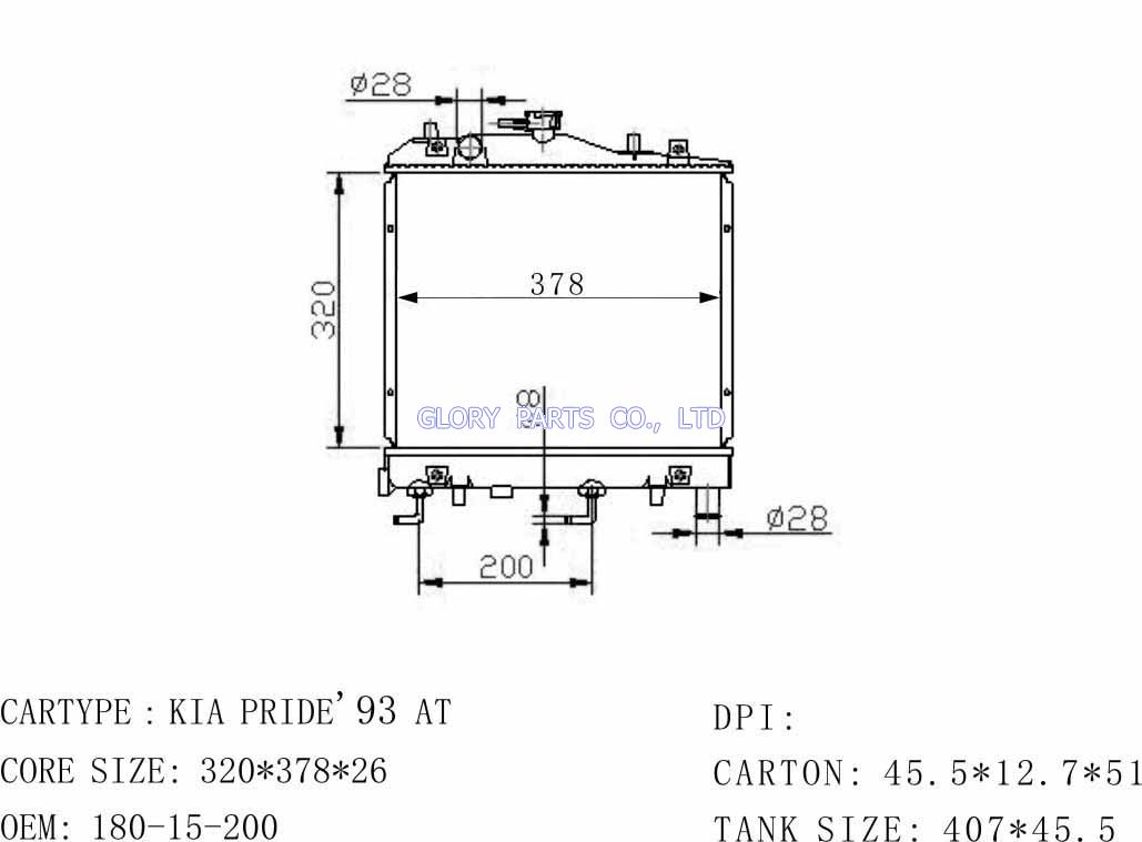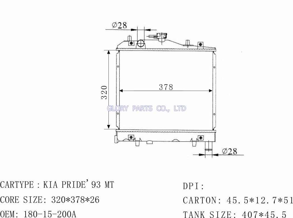 DPI: NISSENS: 66600 OEM: 180-15-200/OK93015200A Car Model: Kia Pride'93 Auto radiator/automovil radiadores