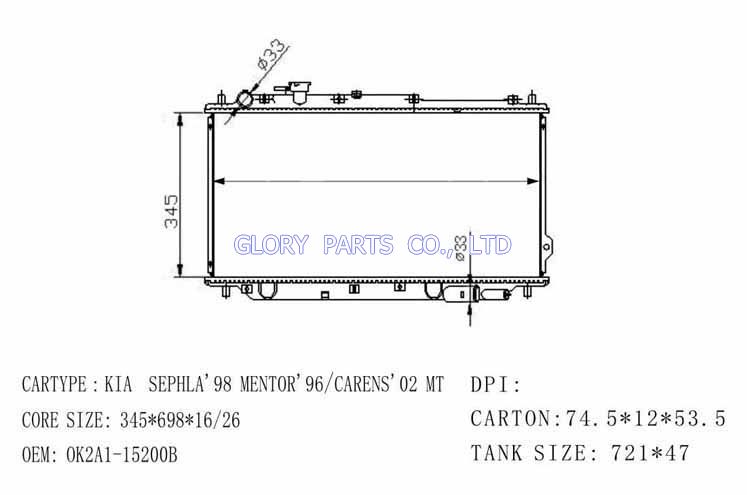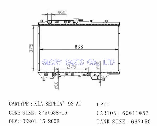 DPI: NISSENS: 63390 OEM: 0K201-15-200B Car Model: Kia Sephia'93 Auto radiator/automovil radiadores
