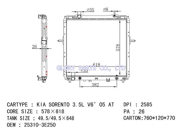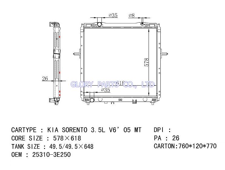 DPI: NISSENS: OEM: 25310-3E200 Car Model: Kia Sorento Auto radiator/automovil radiadores