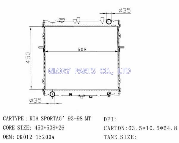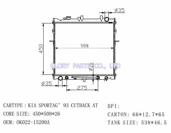 DPI: NISSENS: 66642 OEM: OK012-15200A Car Model: Kia Sportage'93 Auto radiator/automovil radiadores