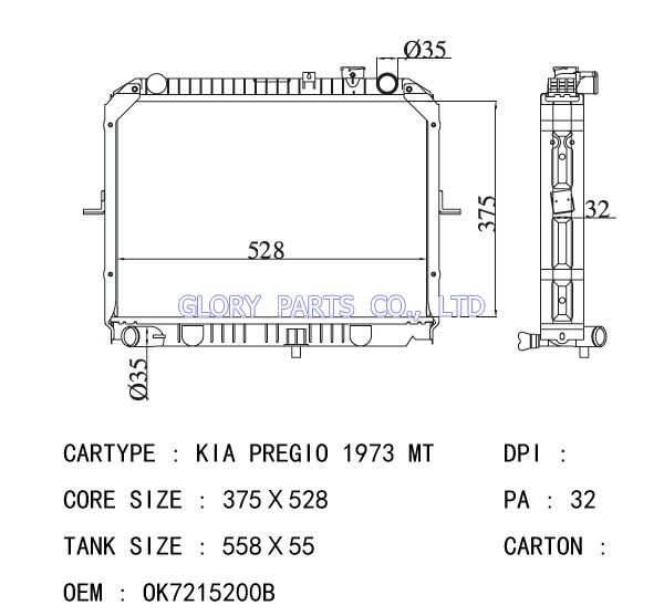 DPI: 23032 NISSENS: 66645 OEM: OK72-15-200B Car Model: Kia Pregio 1973(D) Auto radiator/automovil radiadores