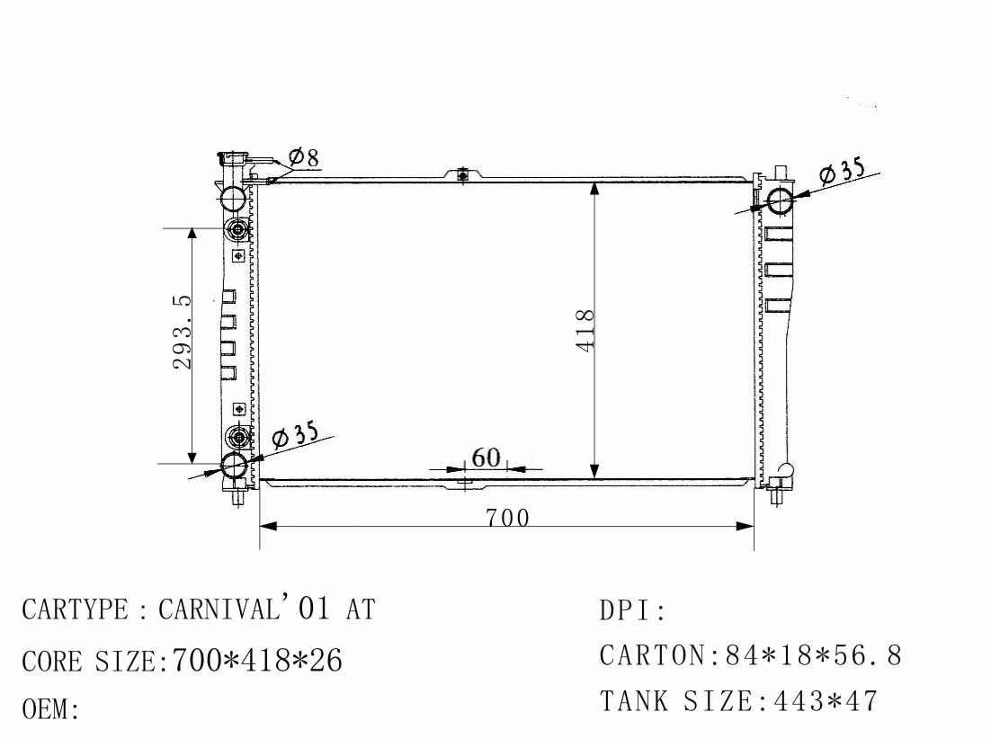 DPI: NISSENS: 66640 OEM: OK55815200A Car Model: Kia Carnival 01 Auto radiator/automovil radiadores