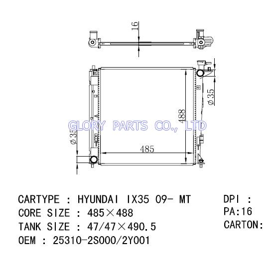 DPI: NISSENS: 67517 OEM: 25310-2S000 Car Model: Hyundai IX35 10- Auto radiator/automovil radiadores