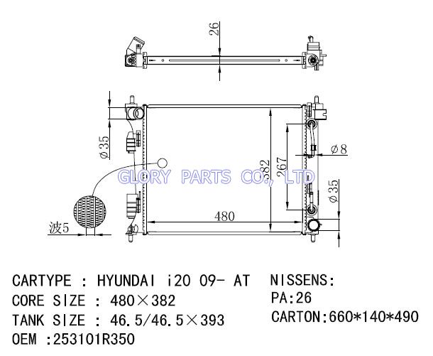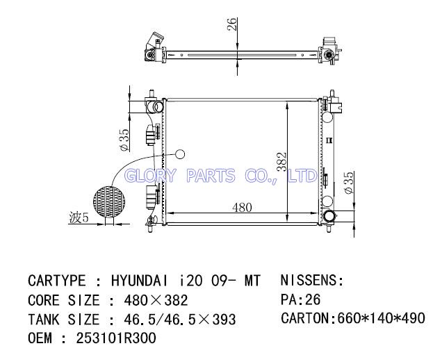 DPI: NISSENS: OEM: 25310-1R300 Car Model: Hyundai i20/Accent 10- Auto radiator/automovil radiadores