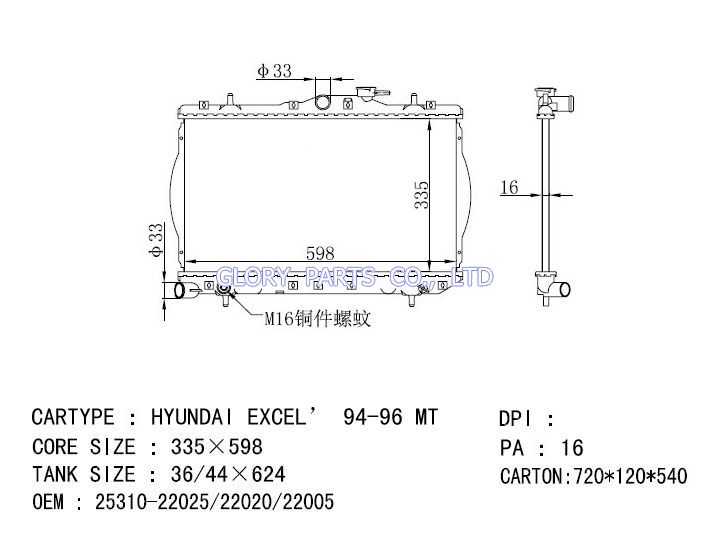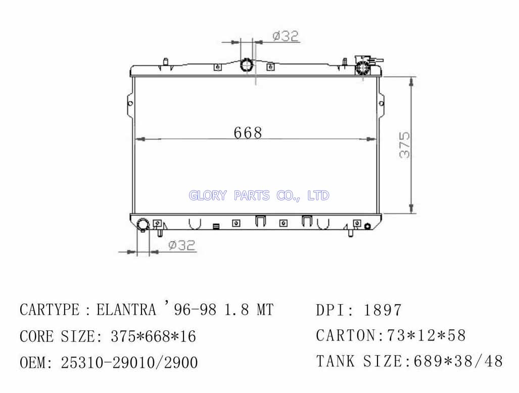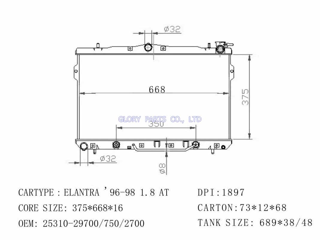 DPI: 1816 NISSENS: 62297 OEM: 25310-22005/25310-22020/ 25310-22025 Car Model: Hyundai Accent'98 Auto radiator/automovil radiadores