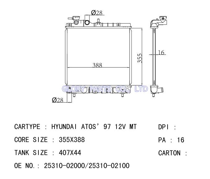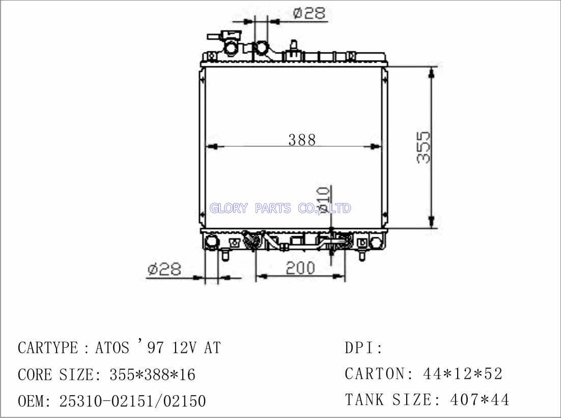 DPI: NISSENS: 67500A OEM: 25310-02000/25310-02100/ 25310-05000 Car Model: Hyundai Atos'97 12V Auto radiator/automovil radiadores