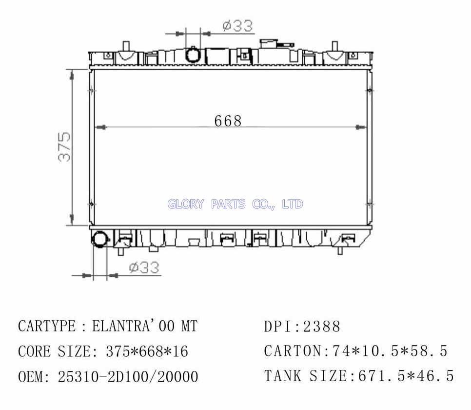 DPI: NISSENS: 67488 OEM: 25310-2D100 Car Model: Hyundai Elantra Auto radiator/automovil radiadores