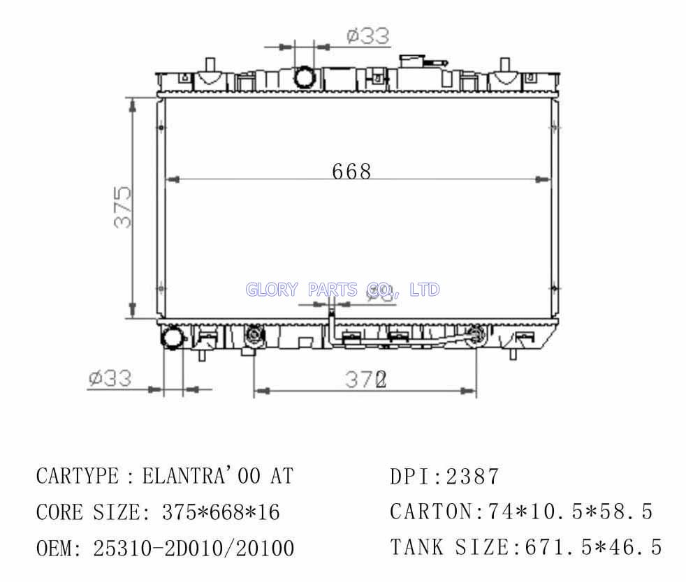 DPI: 2387 NISSENS: 67489 OEM: 25310-2D110 Car Model: Hyundai Elantra'04 Auto radiator/automovil radiadores