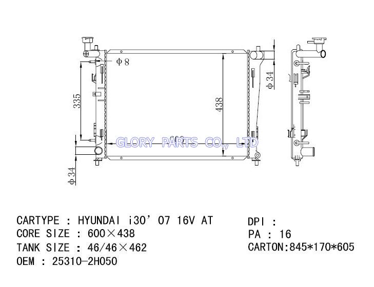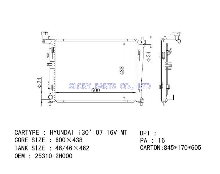 DPI: NISSENS: 67075 OEM: 25310-2H000 Car Model: Hyundai Elantra'07 Auto radiator/automovil radiadores