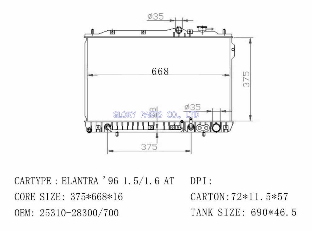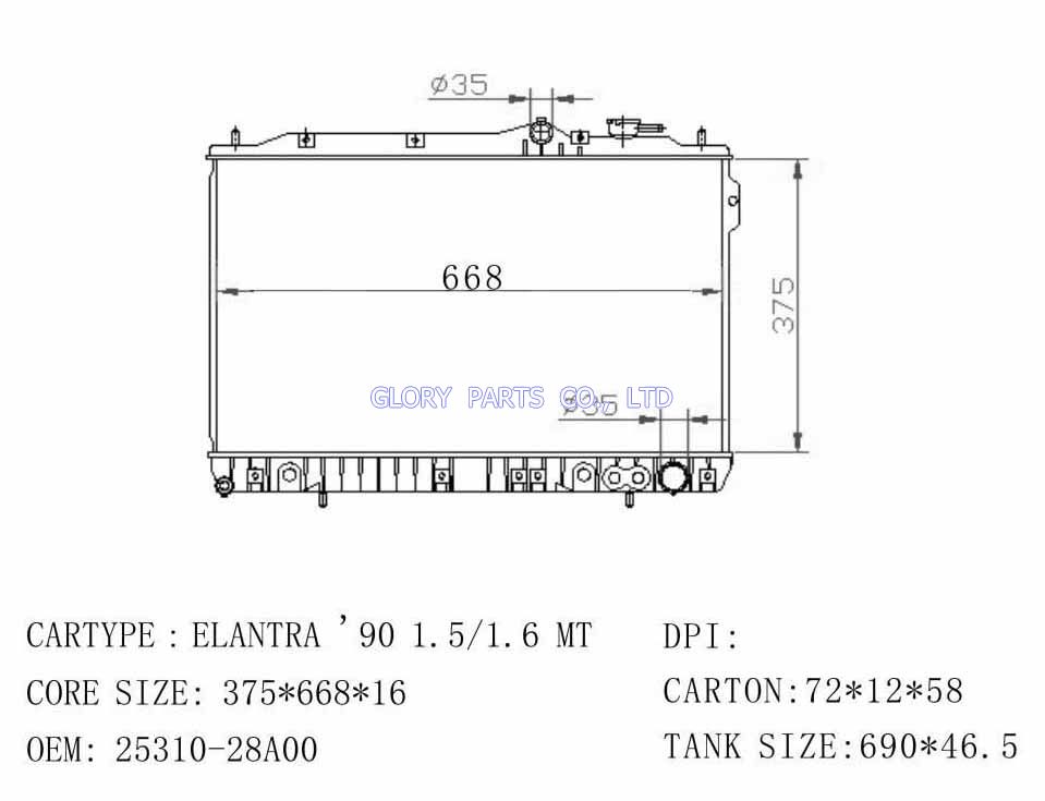 DPI: NISSENS: 62293 OEM: 25310-28A00 Car Model: Hyundai Elantra'90 1.5 Auto radiator/automovil radiadores