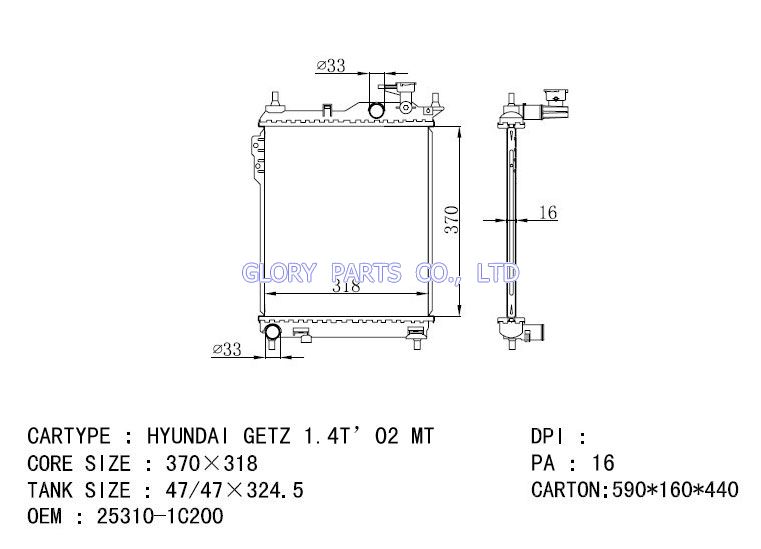 DPI: NISSENS: 67496/67487 OEM: 25310-1C150/25310-1C350 Car Model: Hyundai Getz Auto radiator/automovil radiadores