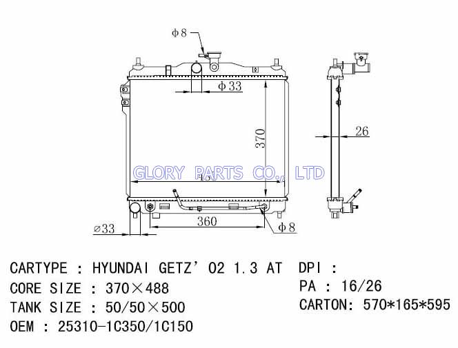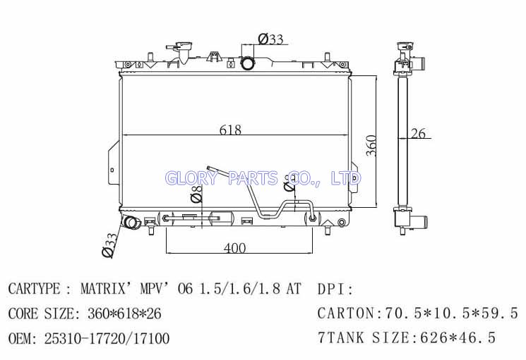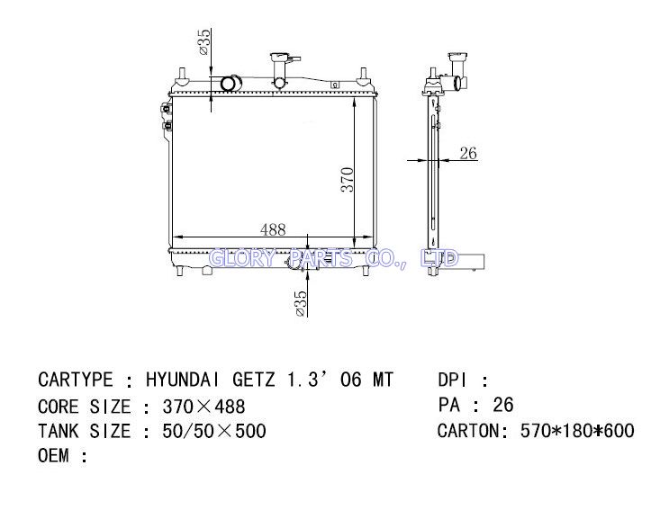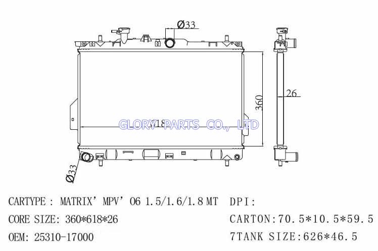 DPI: NISSENS: 67512 OEM: 25310-1C600 Car Model: Hyundai Getz' 06 Auto radiator/automovil radiadores