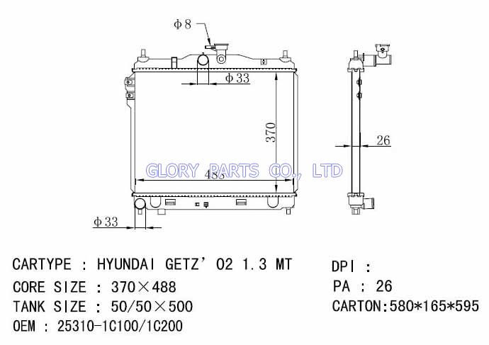 DPI: NISSENS: 67495 OEM: 25310-1C100 Car Model: Hyundai Getz Auto radiator/automovil radiadores