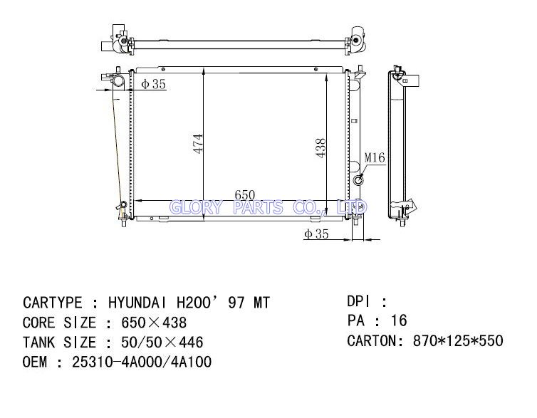 DPI: NISSENS: 67039 OEM: 25310-4A100 Car Model: Hyundai H200 Auto radiator/automovil radiadores