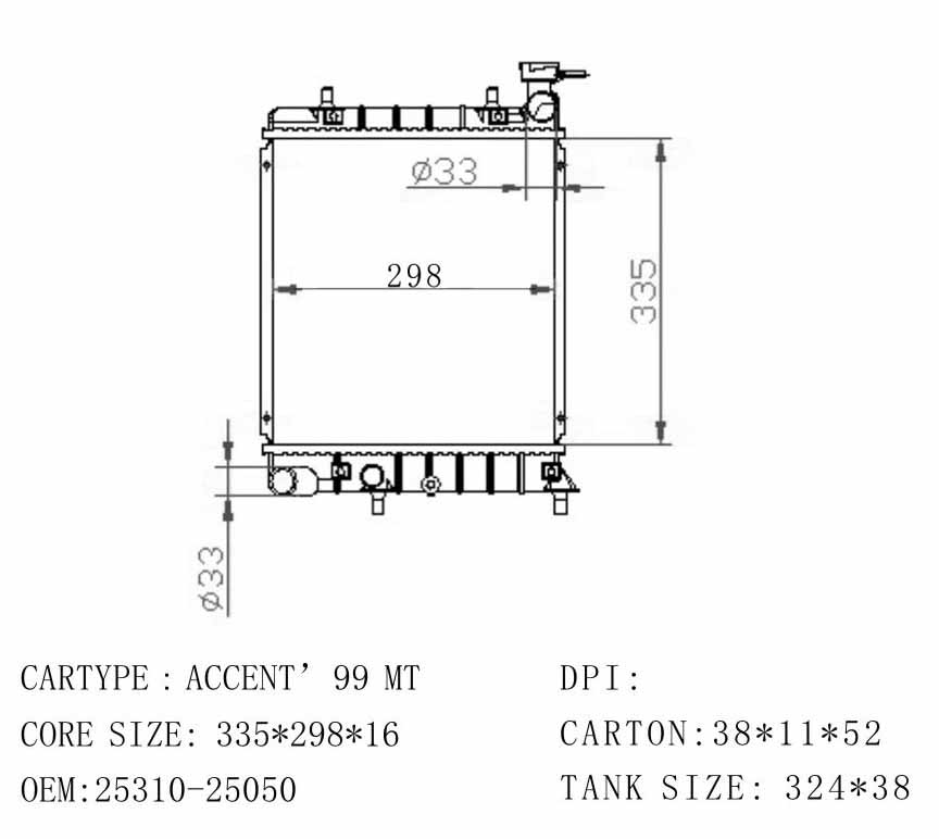 DPI: 2801 NISSENS:67022 OEM: 25310-25050 Car Model: Hyundai Accent'99 Auto radiator/automovil radiadores