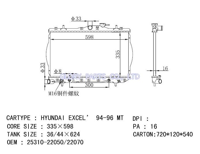 DPI: 1816/2700 NISSENS: 67001 OEM: 25310-22050 Car Model: Hyundai Accent Auto radiator/automovil radiadores