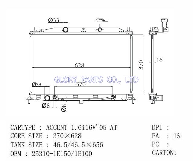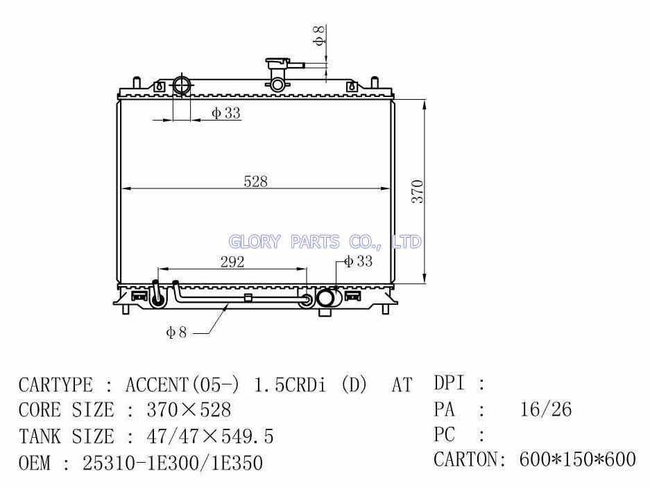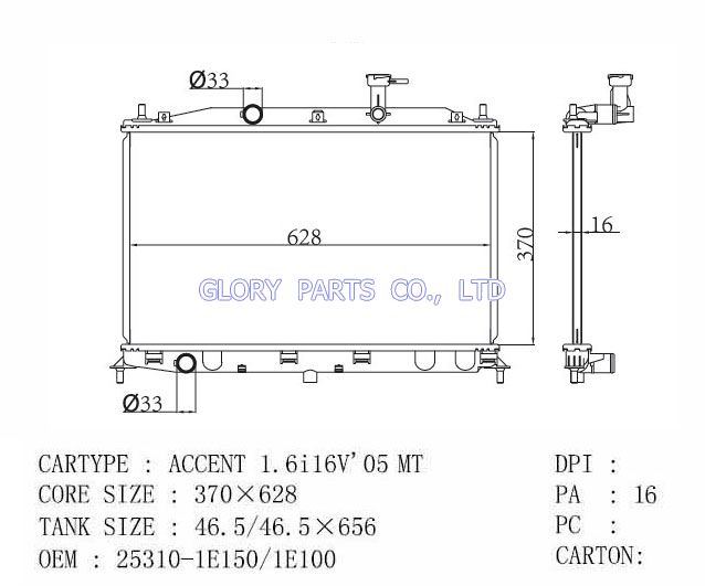 DPI: 2896/2904 NISSENS: 67503 OEM: 25310-1E150/25310-1E100 Car Model: Hyundai Accent 1.6I Auto radiator/automovil radiadores