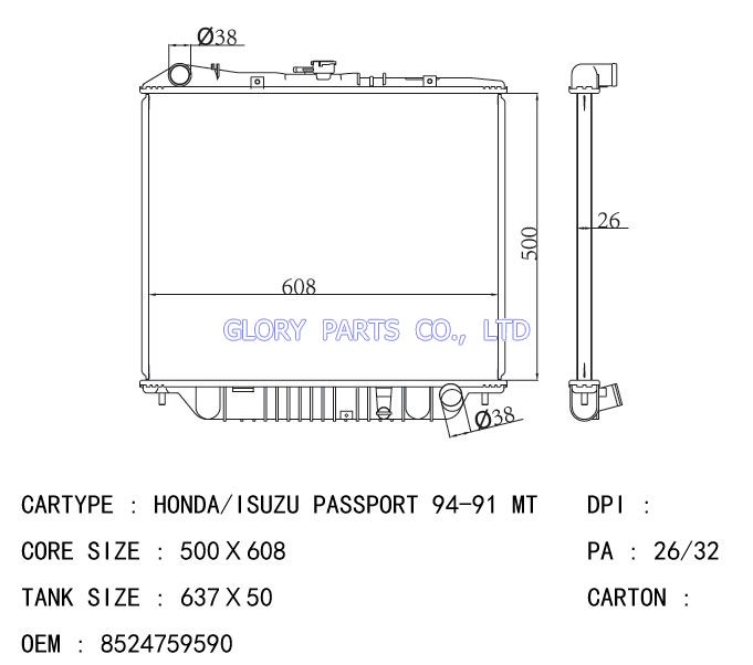 DPI: 1302 NISSENS: OEM: 8524759591 Car Model: Honda Passport'94-97 auto radiator/automovil radiadores