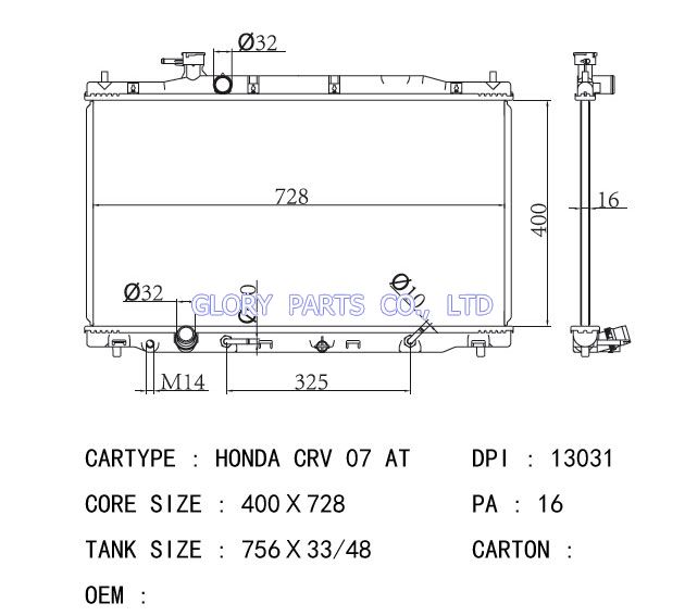 DPI: 13031 NISSENS: OEM: Car Model: Honda CRV 07 auto radiator/automovil radiadores