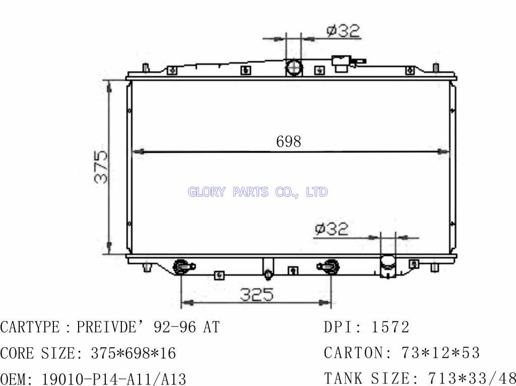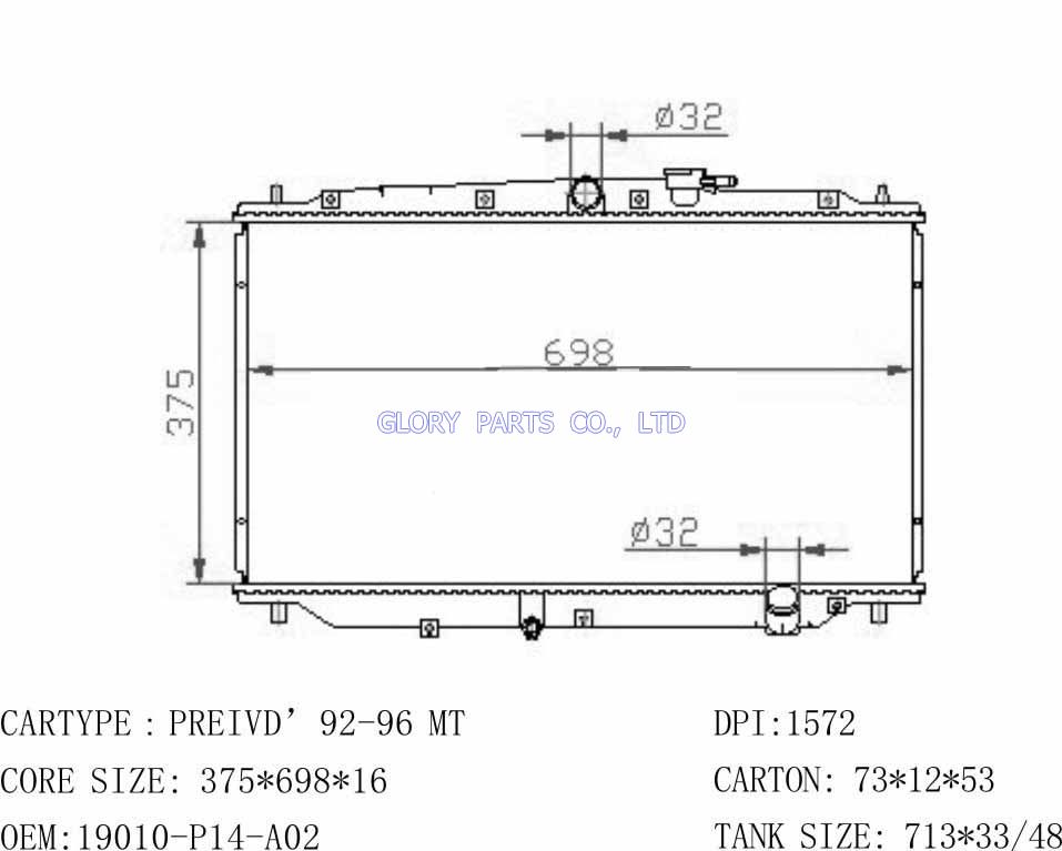 DPI: 1572 NISSENS: 63315 OEM: 19010-P14-A02 Car Model: Honda Preivde'92-96 auto radiator/automovil radiadores
