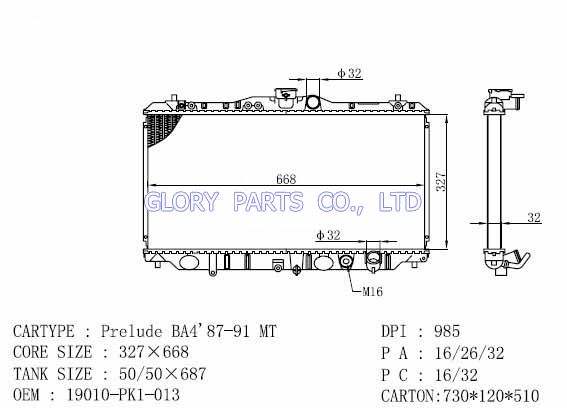 DPI: 985 NISSENS: 62277 OEM: 19010-PK1-013 Car Model: Honda Prelude auto radiator/automovil radiadores