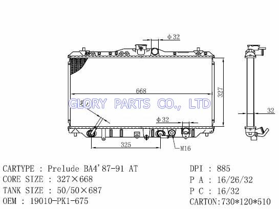 DPI: 885 NISSENS: 63341 OEM: 19010-PK1-675 Car Model: Honda Prelude auto radiator/automovil radiadores