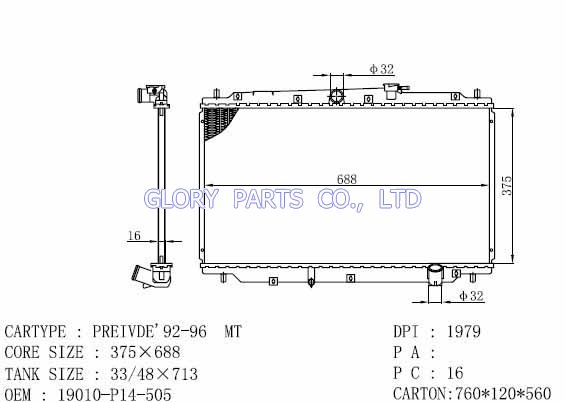 DPI: NISSENS: 63316 OEM: 19010-P14-A11 Car Model: Honda Previde'92-96 auto radiator/automovil radiadores