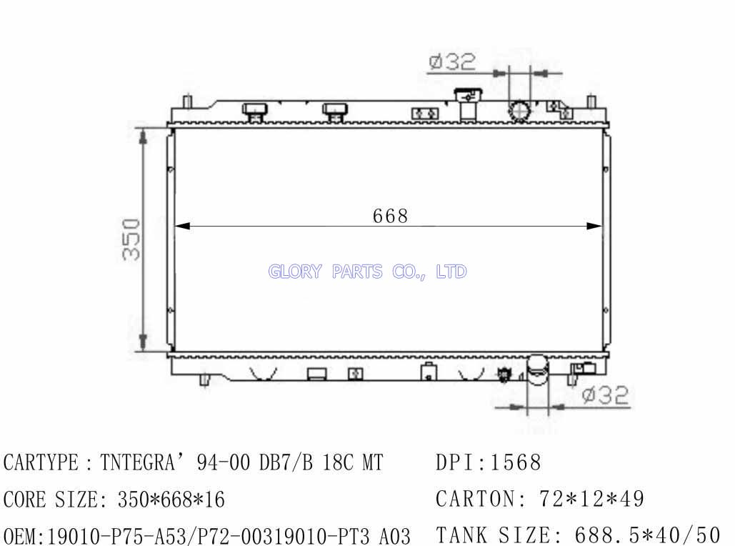 DPI: 1568 NISSENS: OEM: 19010-P75-A53/19010-P72-003 Car Model: Honda Prelude auto radiator/automovil radiadores