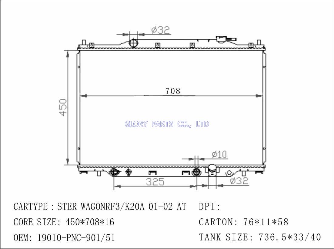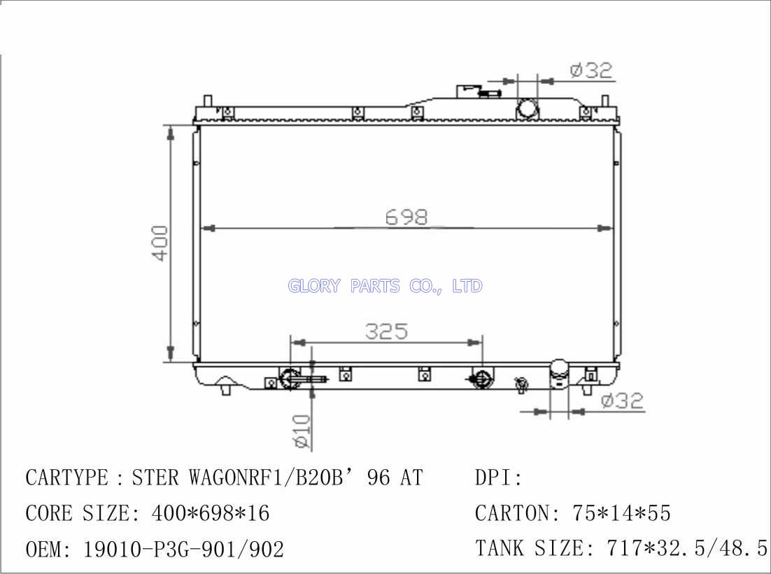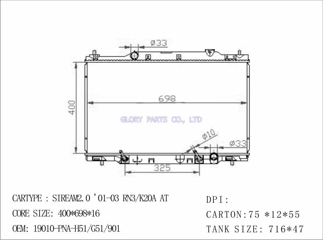 DPI: 2573 NISSENS: 68104 OEM: 19010-PNA-G51/19010-PNA-H51/ 19010-PNA-901 Car Model: Honda Stream 2.0'01-03 auto radiator/automovil radiadores