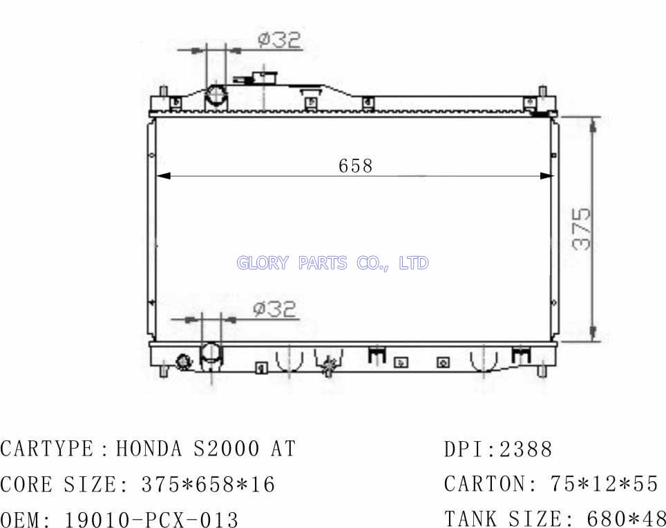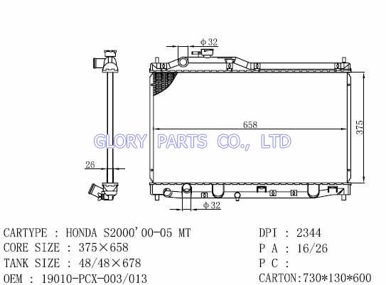 DPI: 2344 NISSENS: OEM: 19010-PCX-013 Car Model: Honda S2000 auto radiator/automovil radiadores