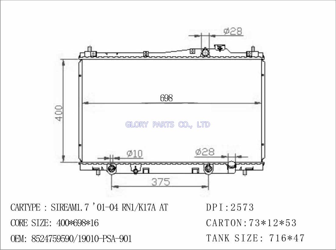 DPI: NISSENS: OEM: 19010-PSA-901 Car Model: Honda Stream 1.7'01-04 auto radiator/automovil radiadores