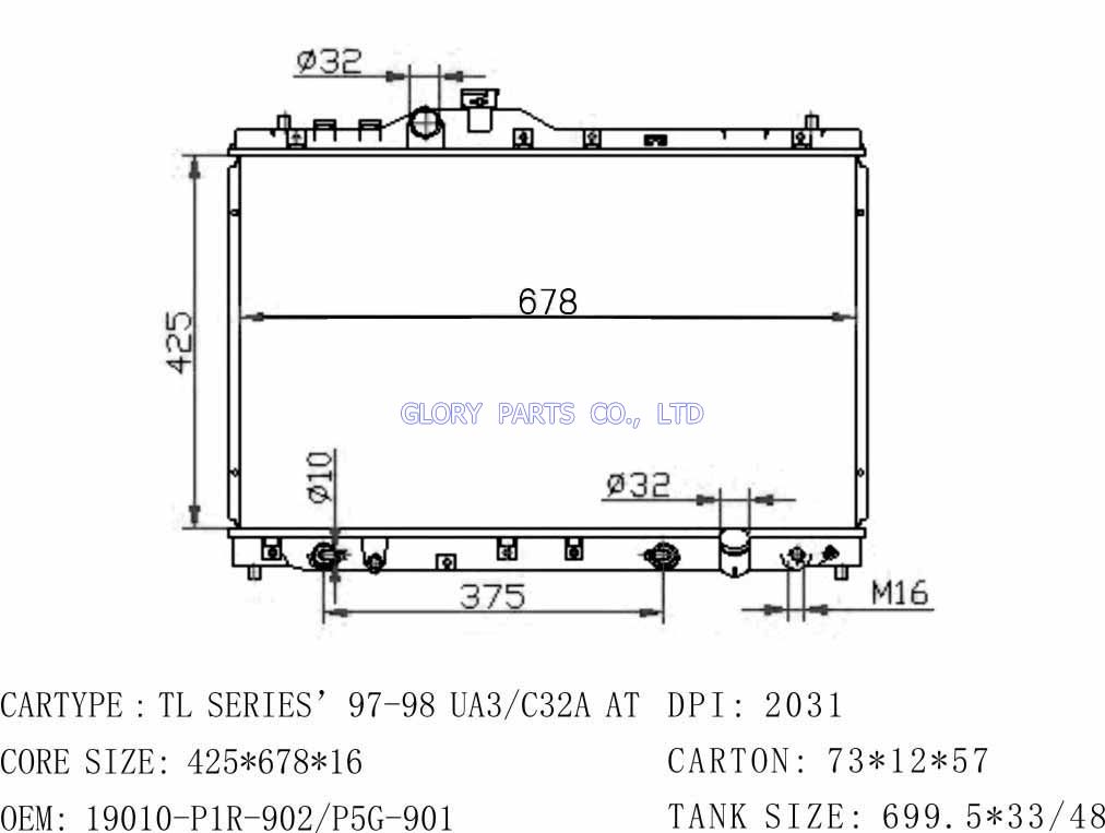 DPI: 2031 NISSENS: OEM: 19010-P5G-901 Car Model: Honda TL auto radiator/automovil radiadores