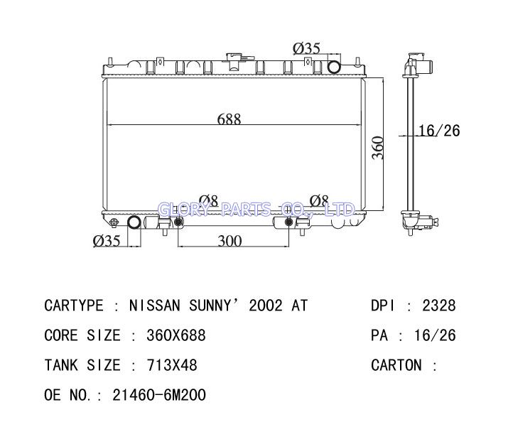 DPI: 2328 NISSENS: OEM: 21460-6M200 AT CAR MODEL: Nissan Sunny'2002 Auto radiator/automovil radiadores