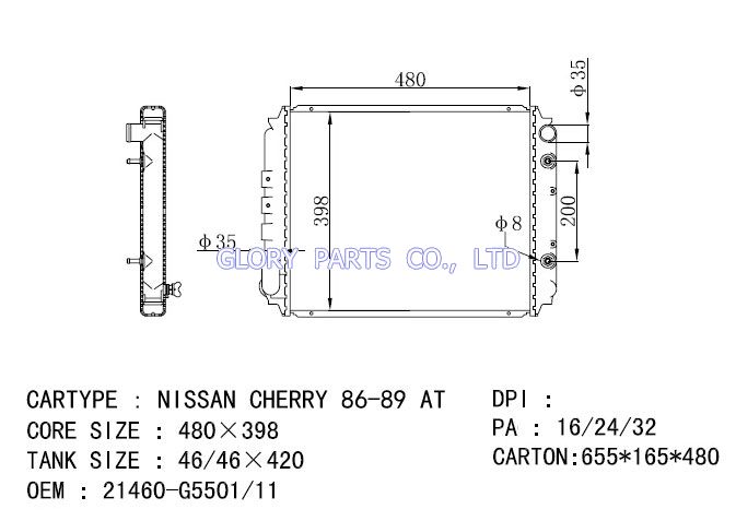 DPI: NISSENS: OEM: 21460-G5411/21410-G5501 CAR MODEL: Nissan Cherry III N12 Auto radiator/automovil radiadores