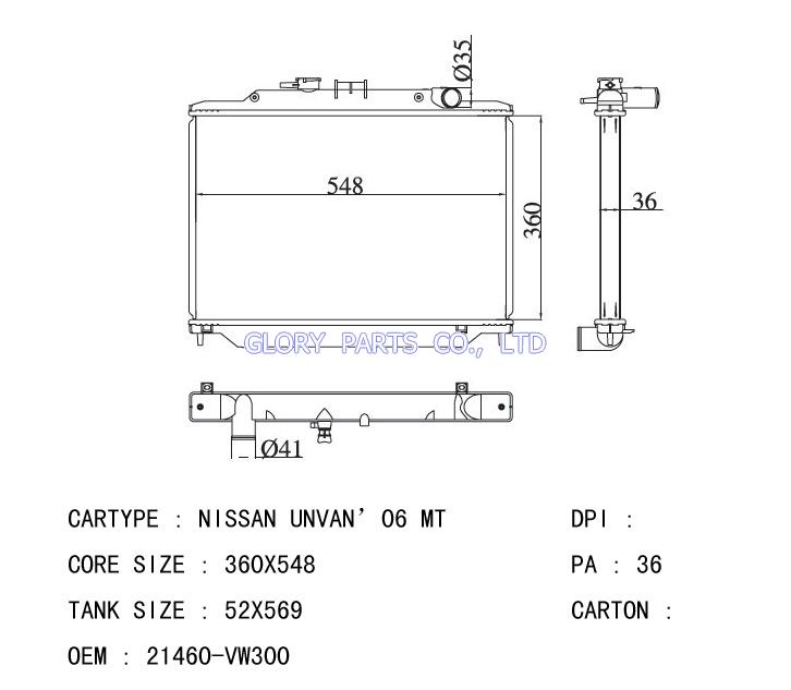 DPI: NISSENS: OEM: 21460-VW300 CAR MODEL: Nissan Unvan 06 Auto radiator/automovil radiadores