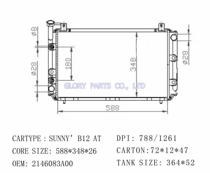 DPI: 788/1261 NISSENS: OEM: 21460-83A00 CAR MODEL: Nissan Sunny'B12 Auto radiator/automovil radiadores