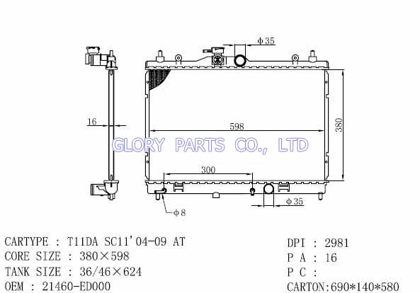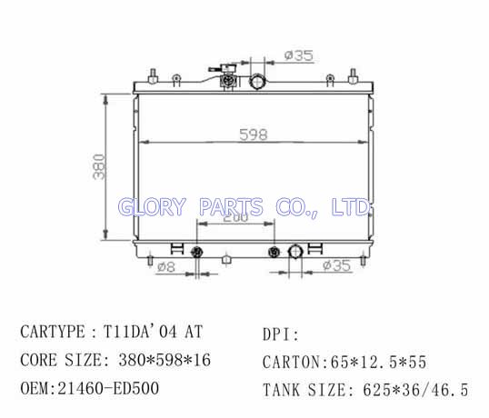 DPI: NISSENS: OEM: 21460-ED500 CAR MODEL: Nissan Tiida Auto radiator/automovil radiadores