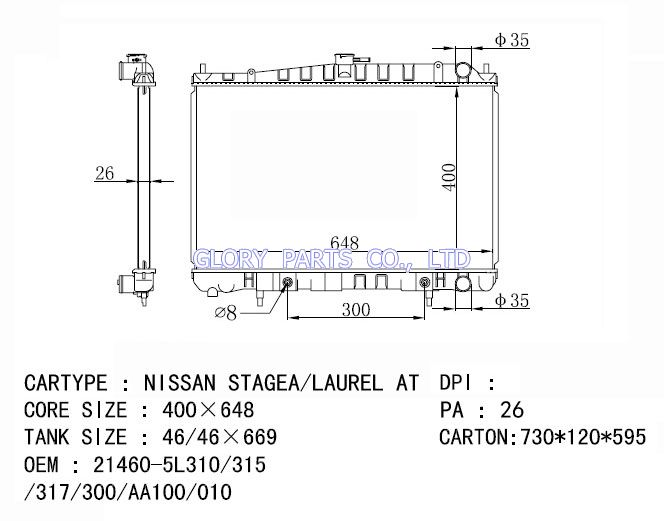 DPI: NISSENS: OEM: 21460-AA010/21460-5L310 CAR MODEL: Nissan Stagea 97-98 Auto radiator/automovil radiadores