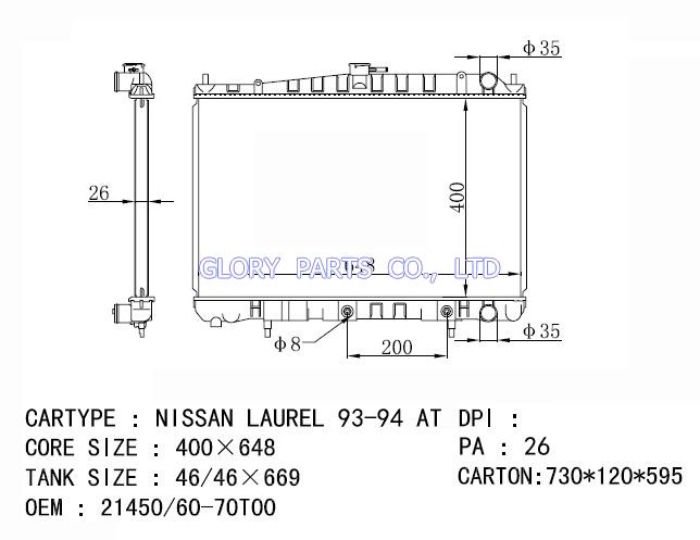 DPI: NISSENS: OEM: 21460-70T600 CAR MODEL: Nissan Laurel 93-94 Auto radiator/automovil radiadores
